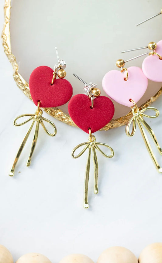 Valentines Golden Sparkles Heart Trio Dangle Earrings