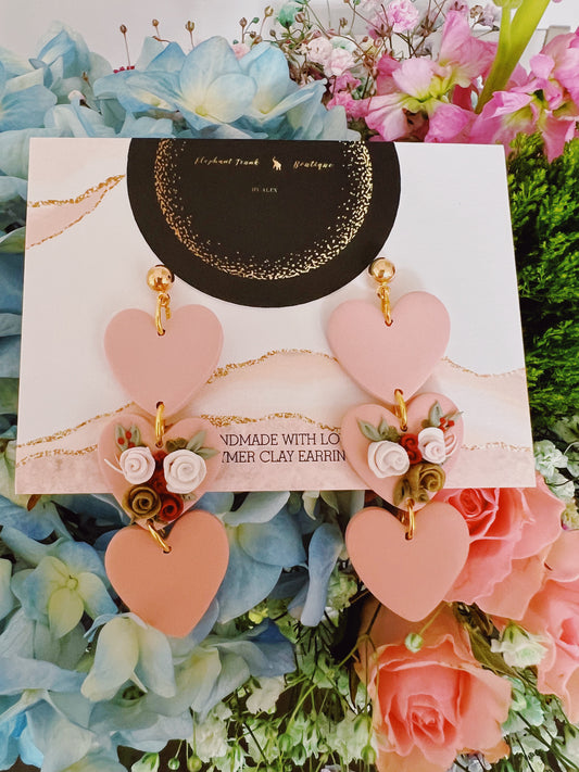 Valentines Golden Sparkles Heart Trio Dangle Earrings
