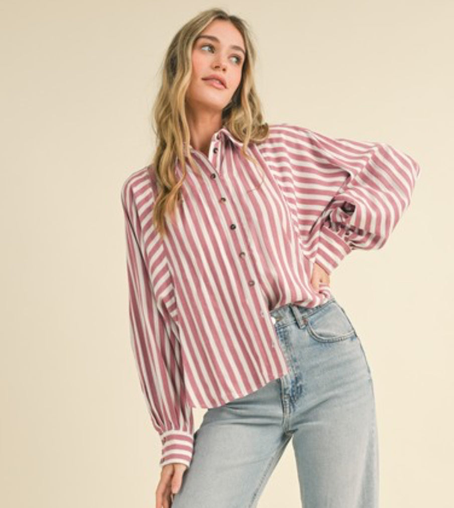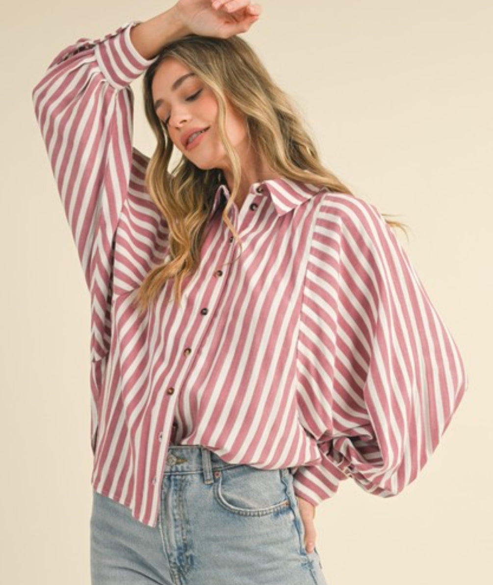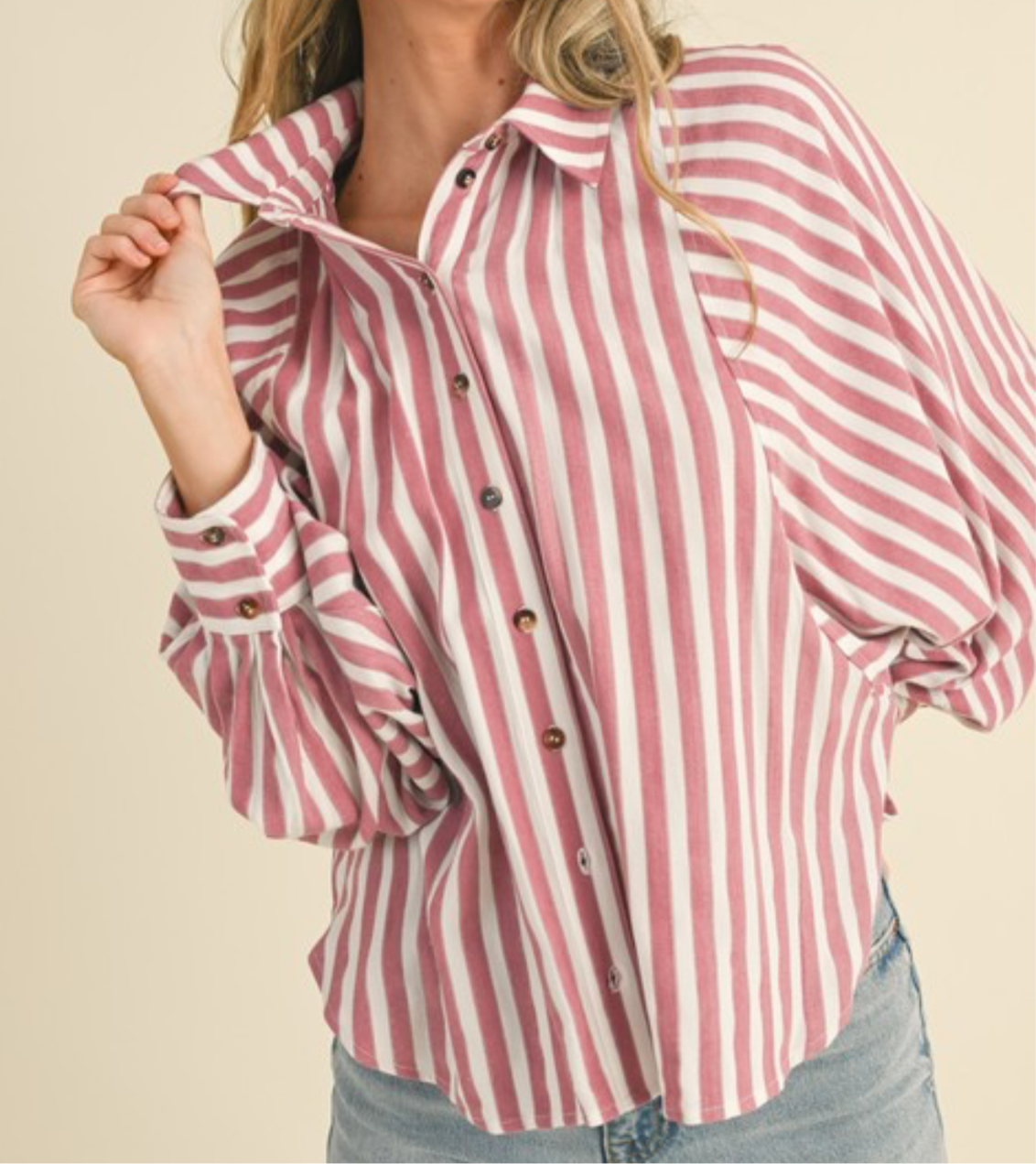 Sweet Perspective Striped Raspberry Batwing Button Down