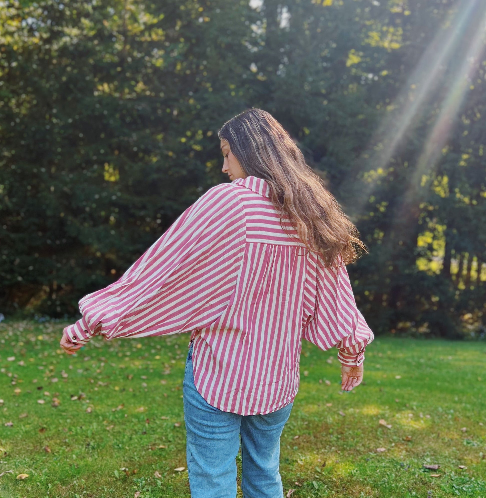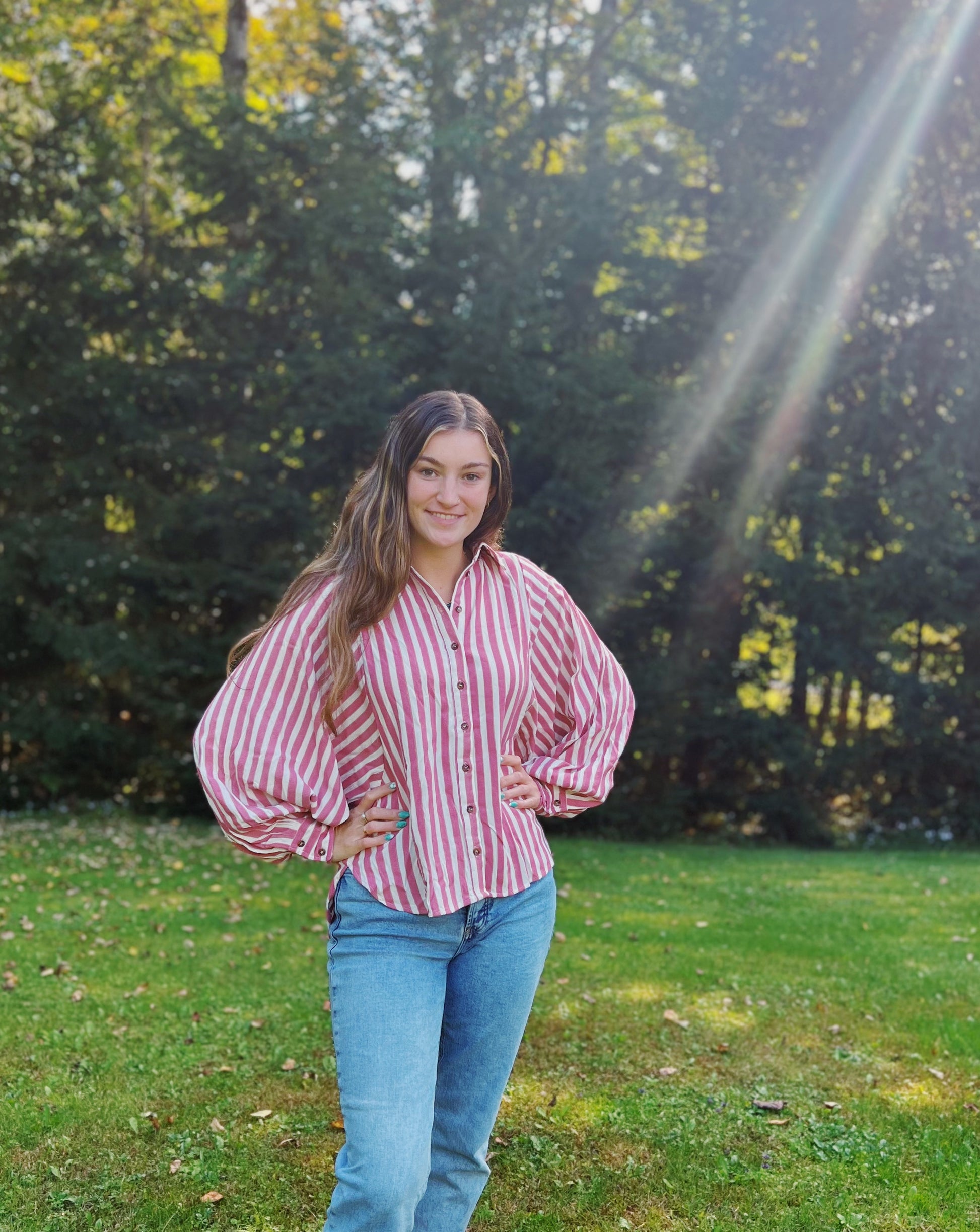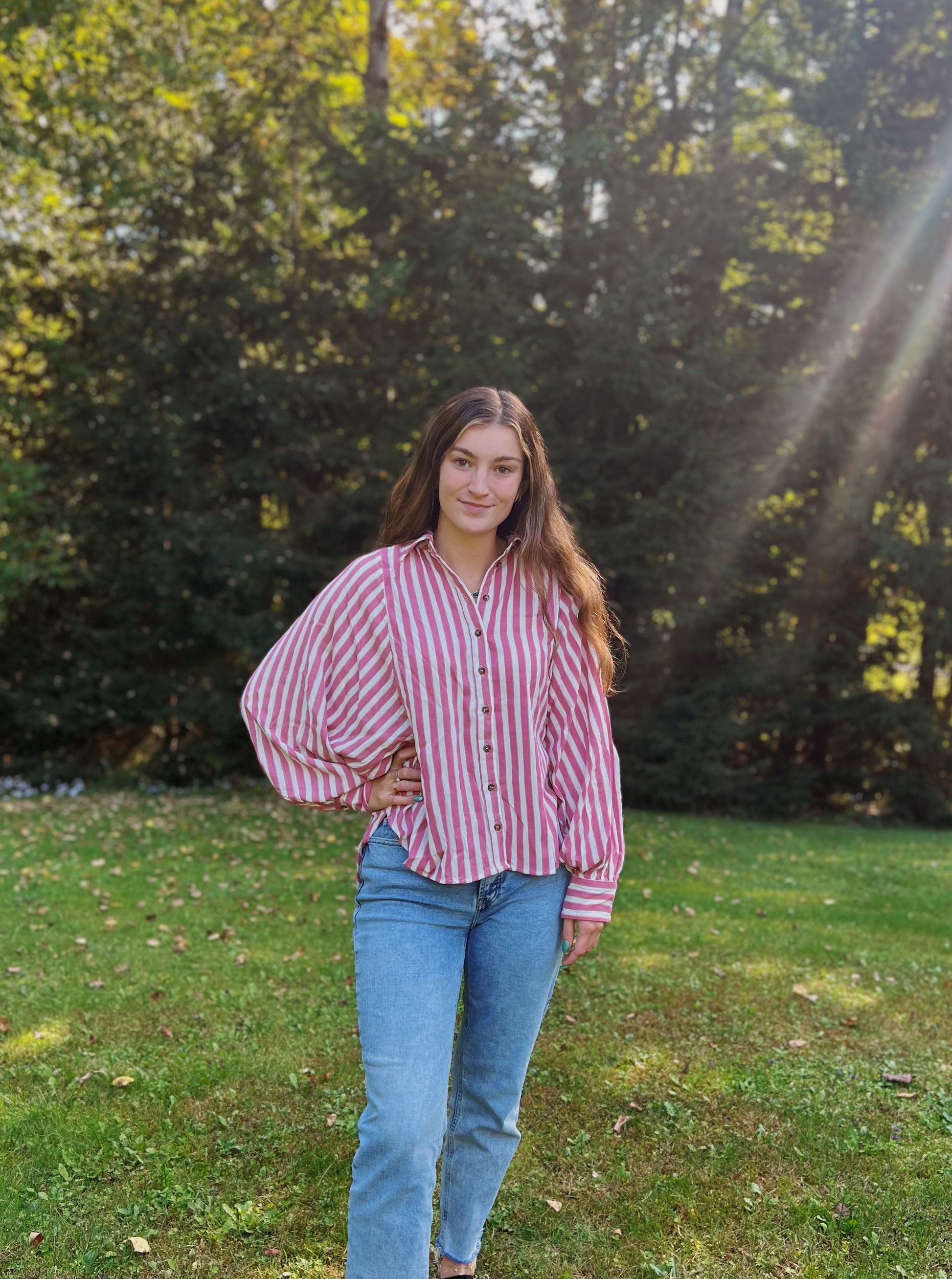 Sweet Perspective Striped Raspberry Batwing Button Down