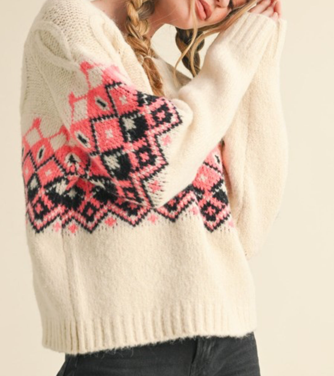 Called You Mine Pink Diamond Fair Isle Sweater