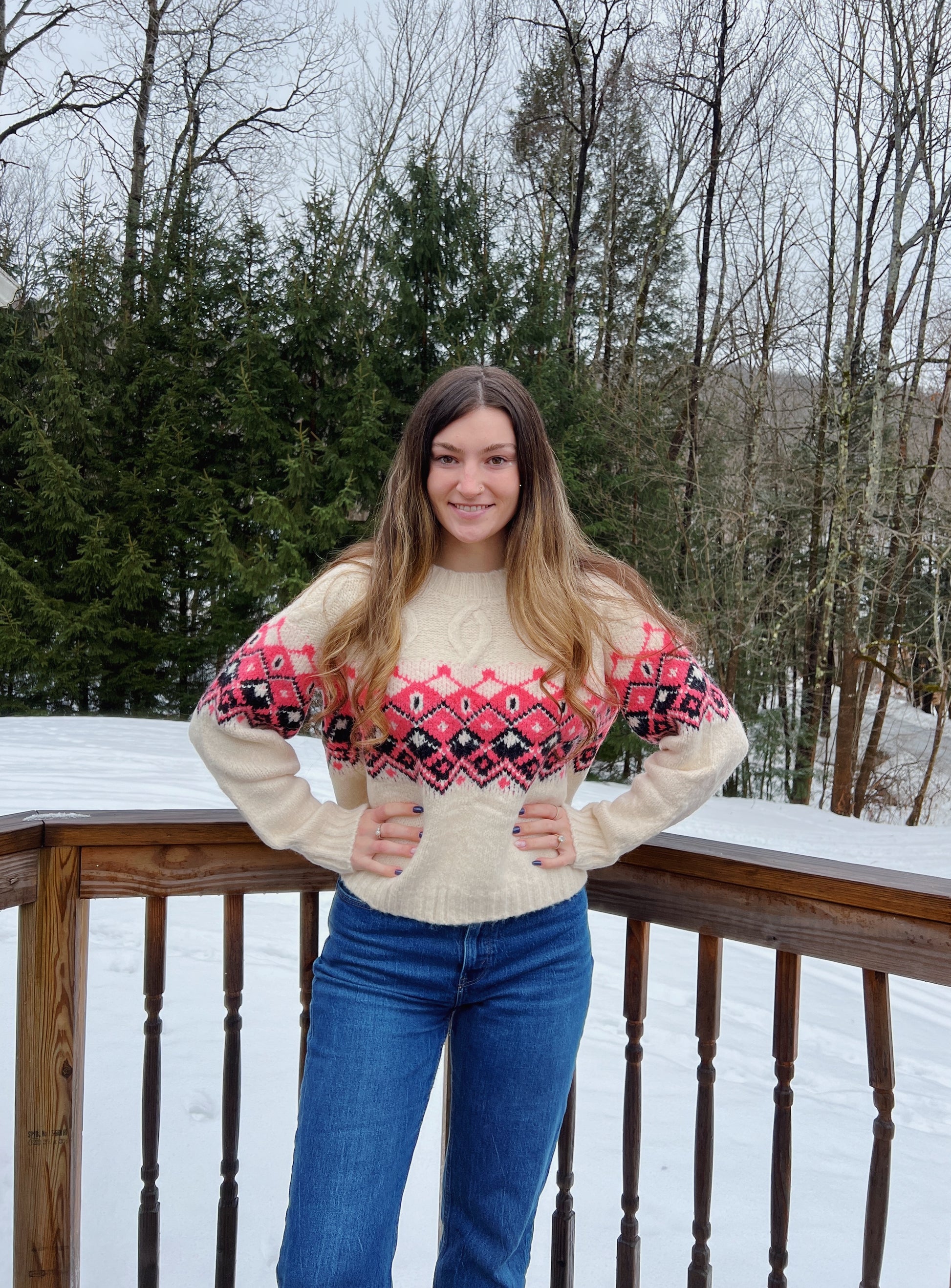 - Cable knit colorful fair isle sweater