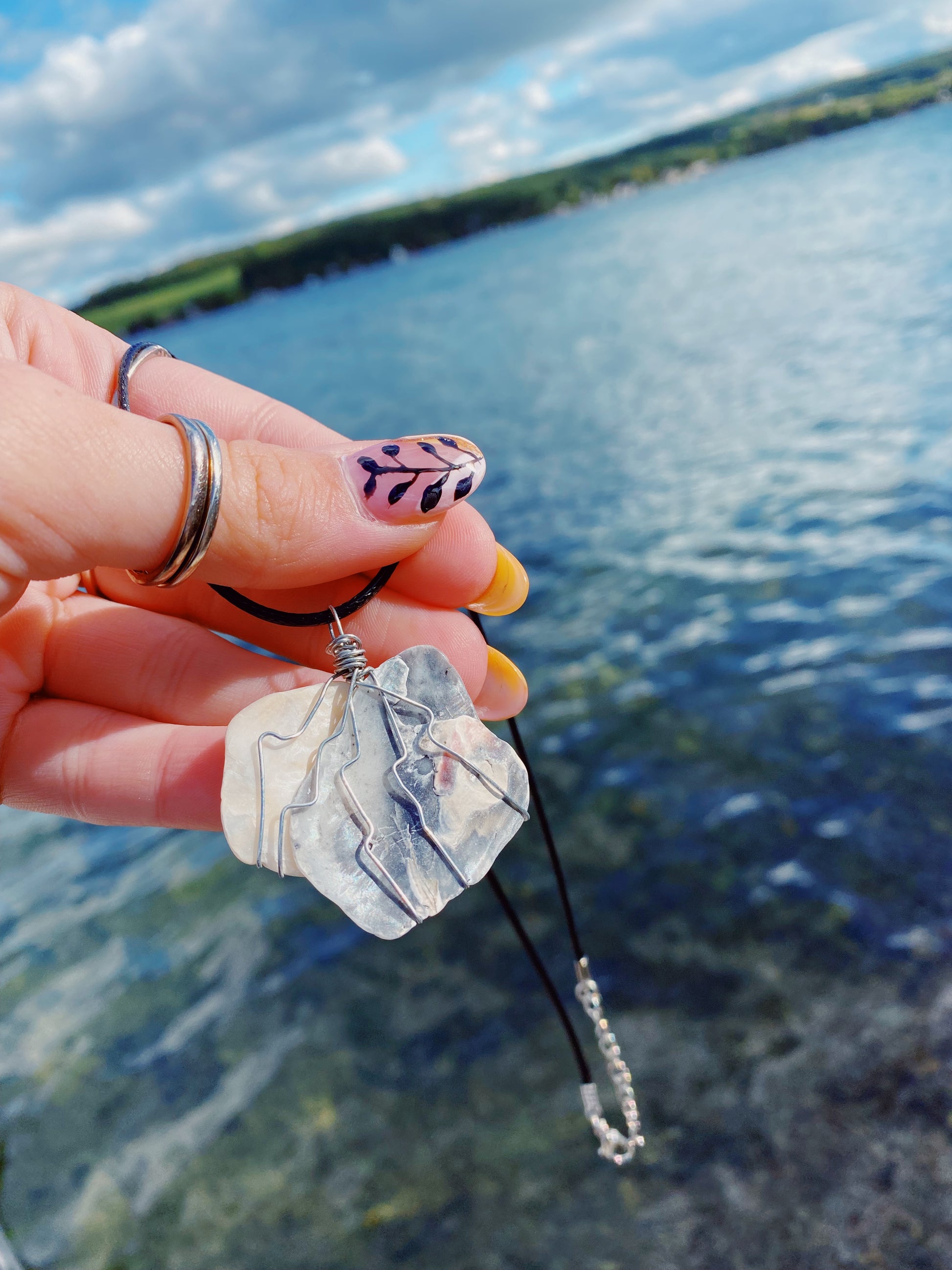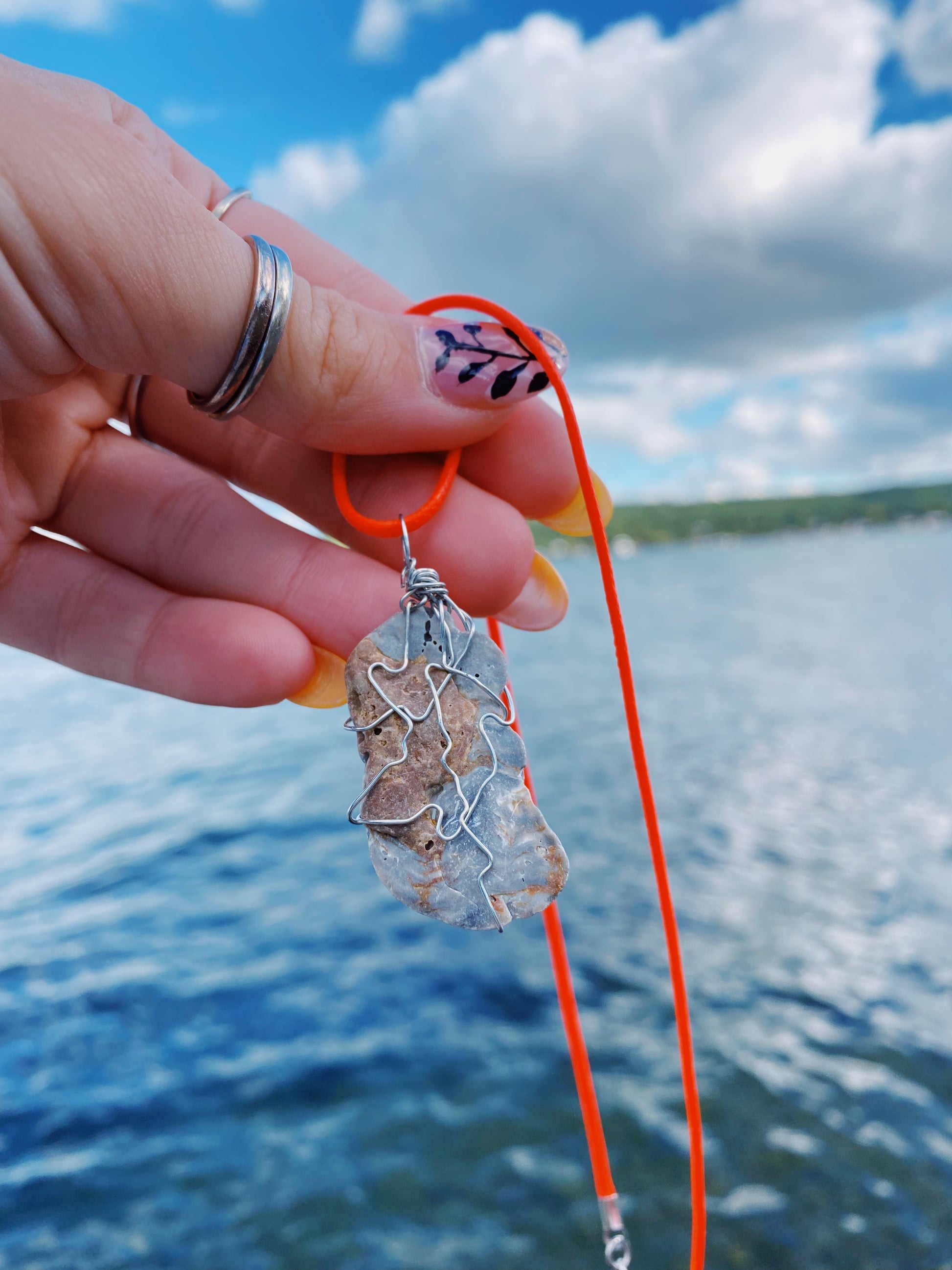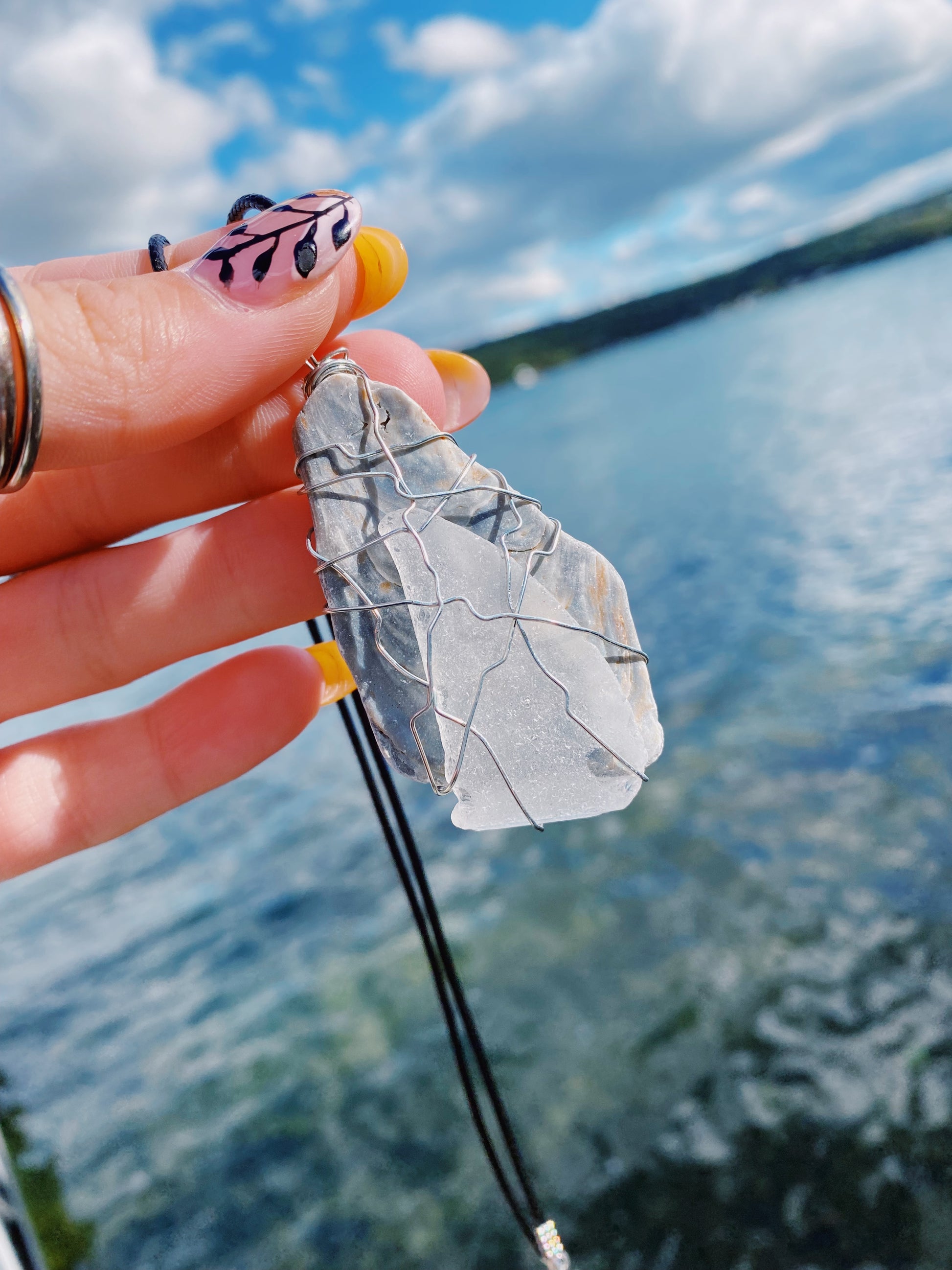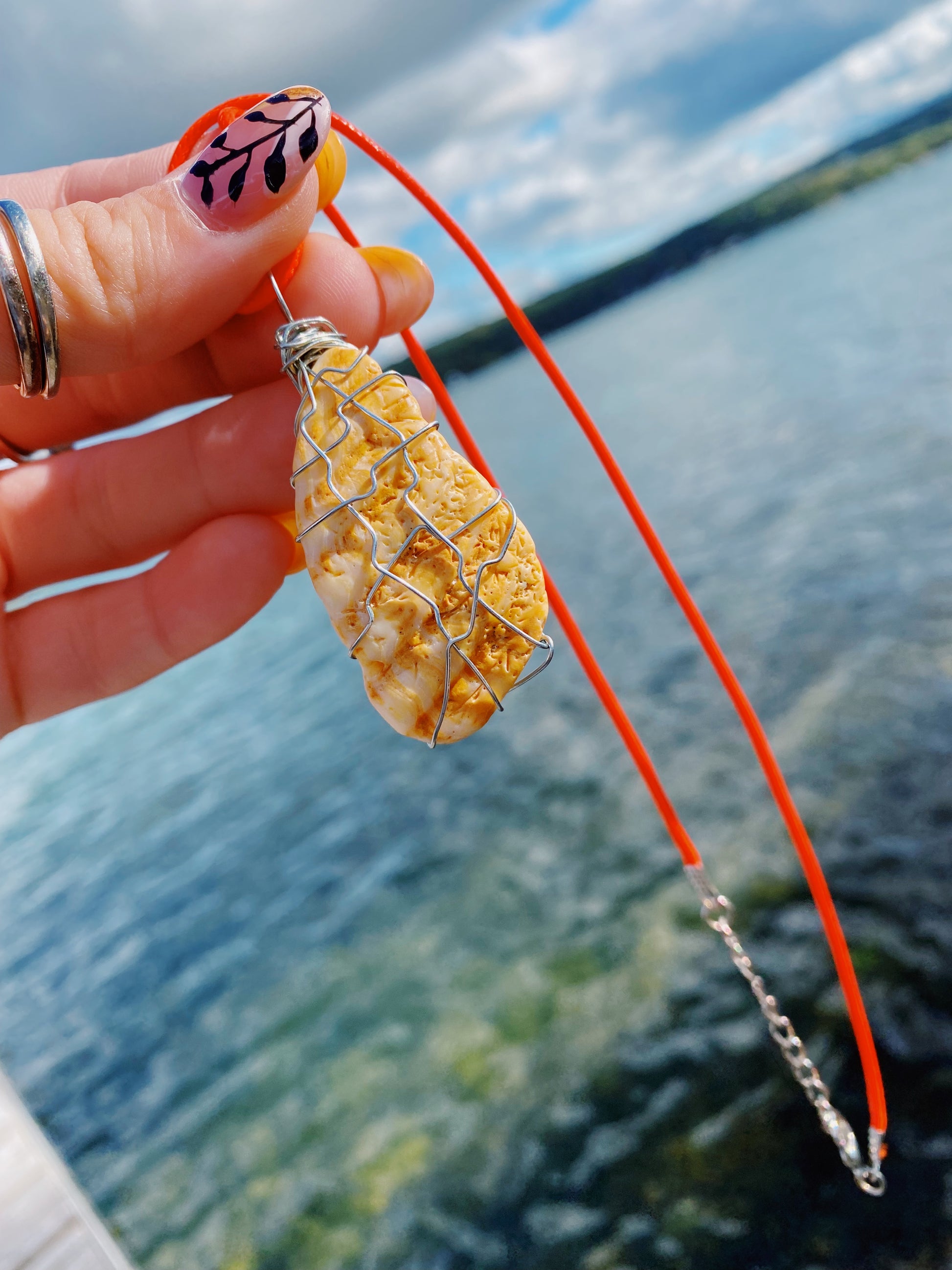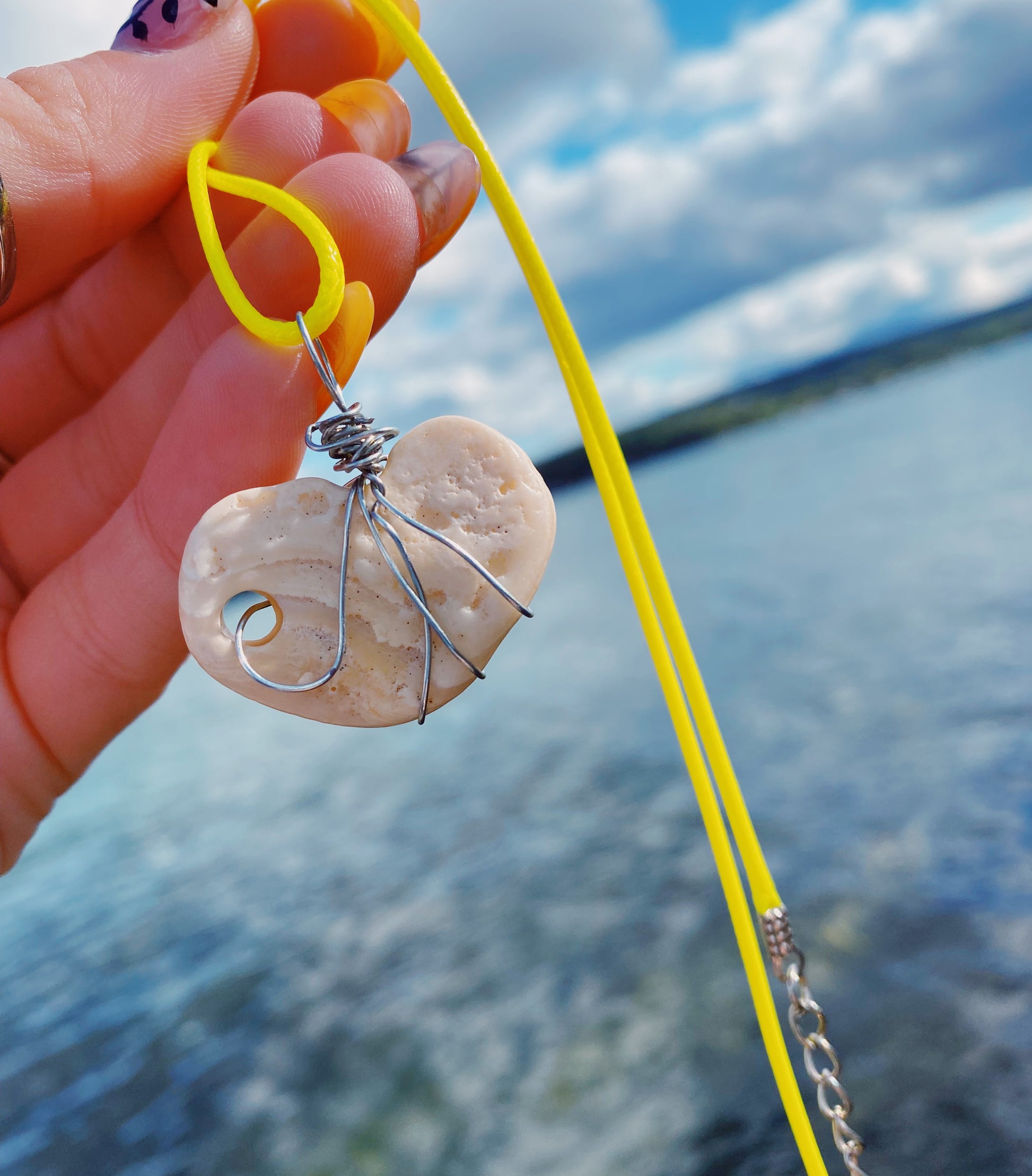 Handmade wire wrapped necklaces from Florida rocks, seaglass & shells