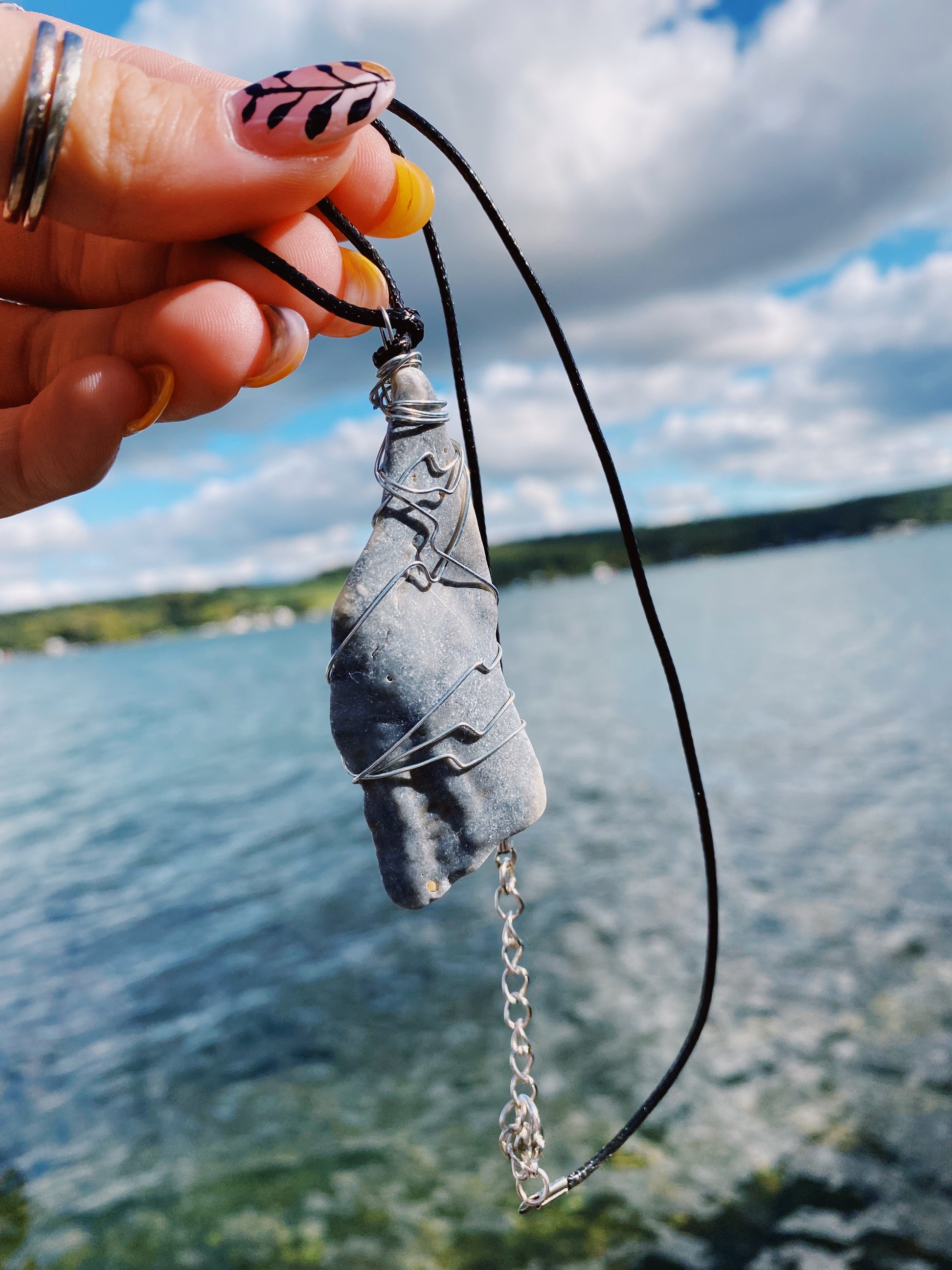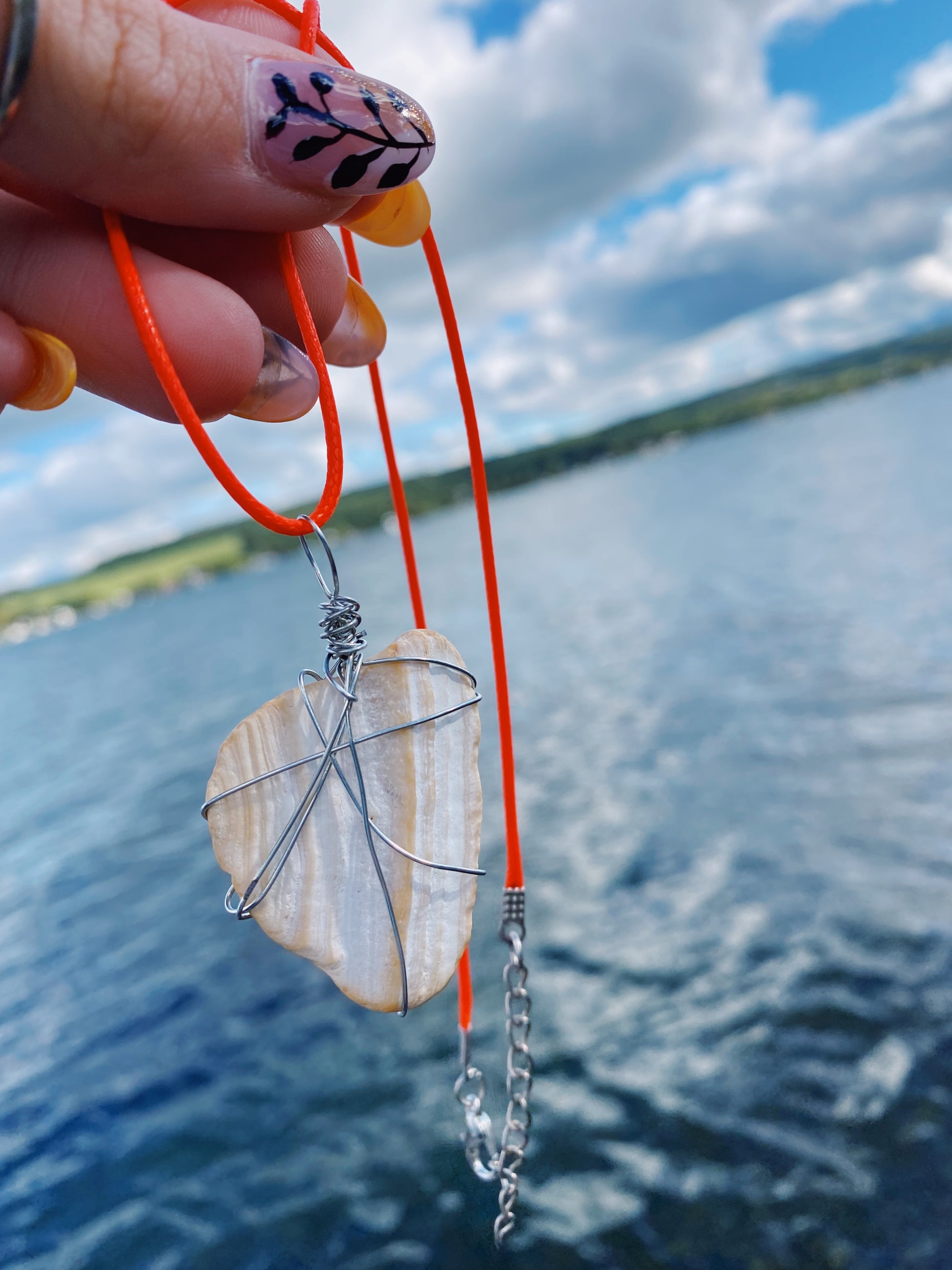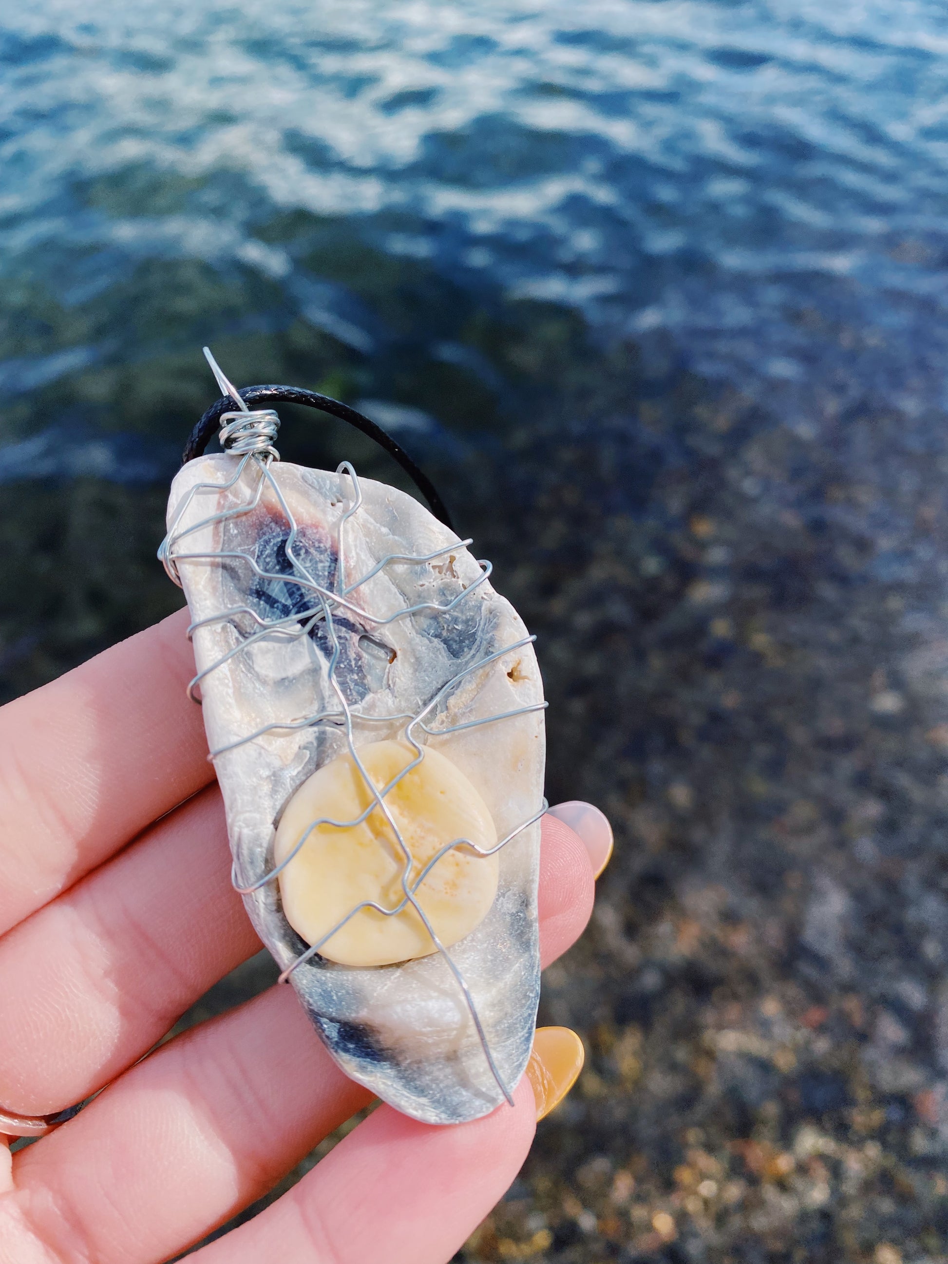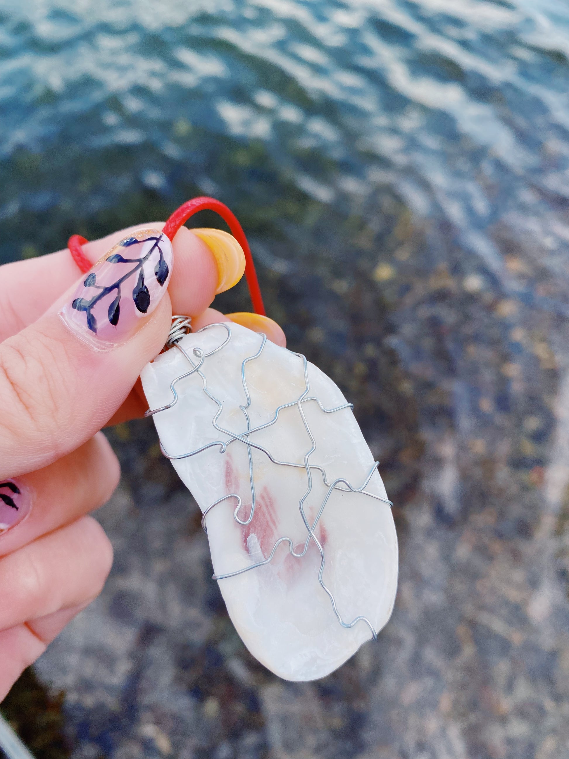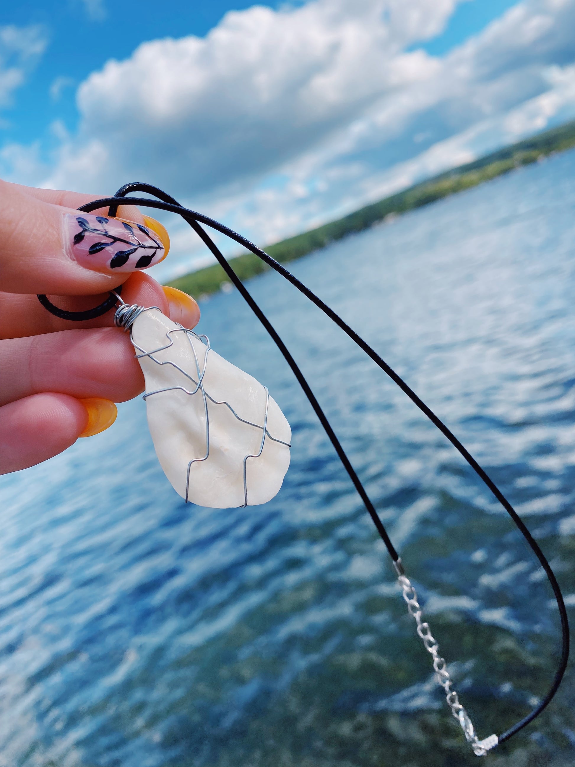 Handmade wire wrapped necklaces from Florida rocks, seaglass & shells