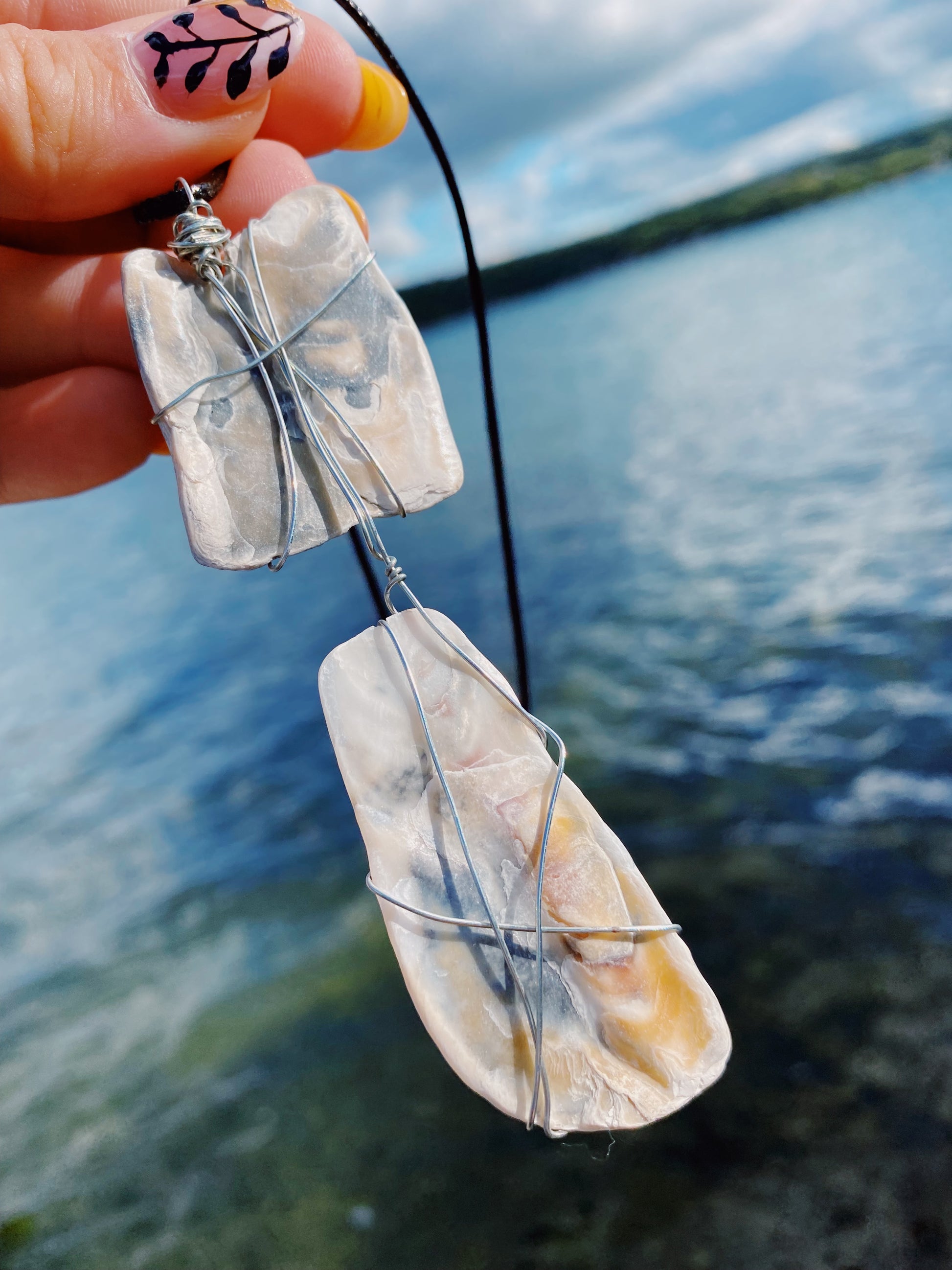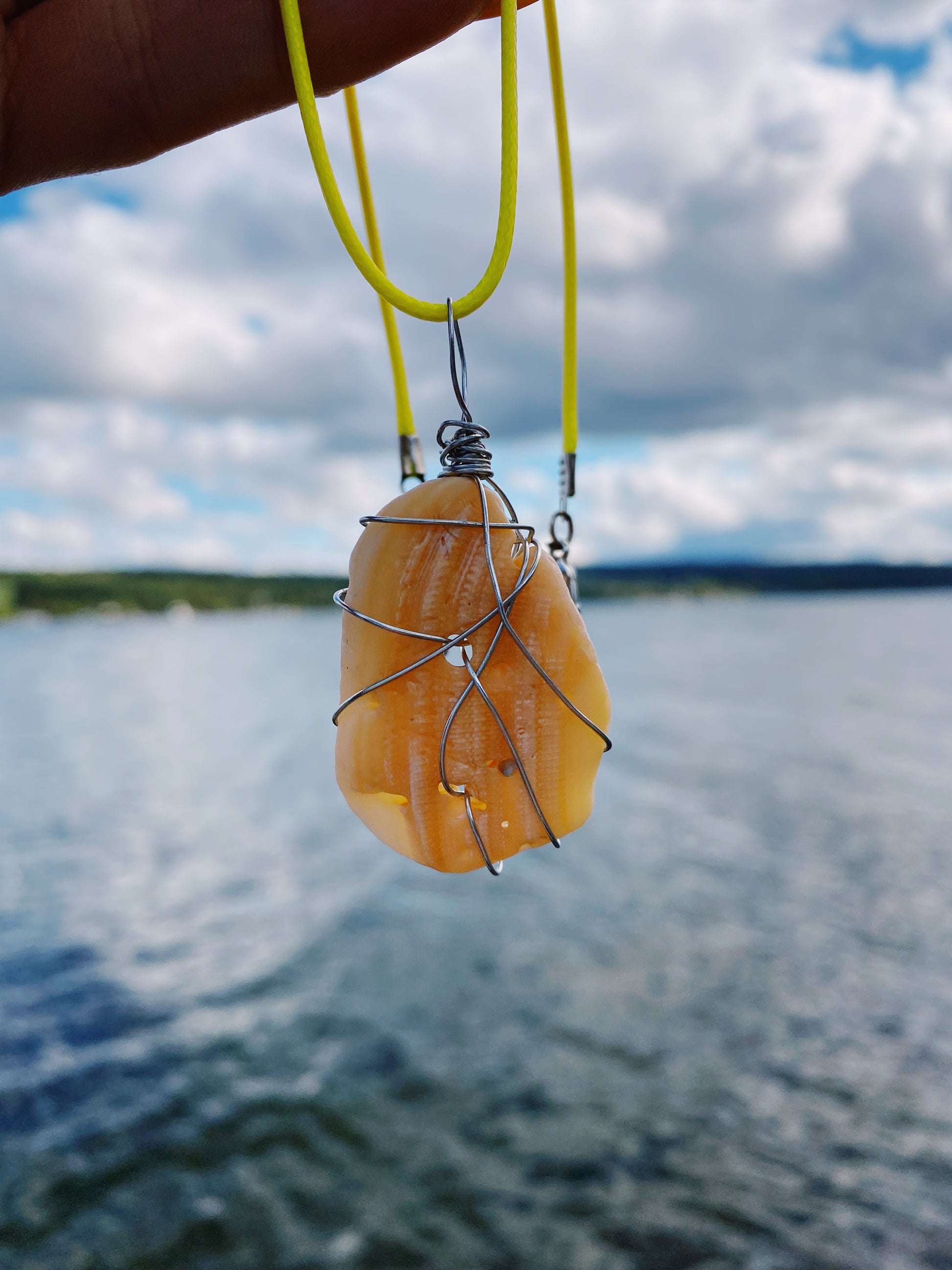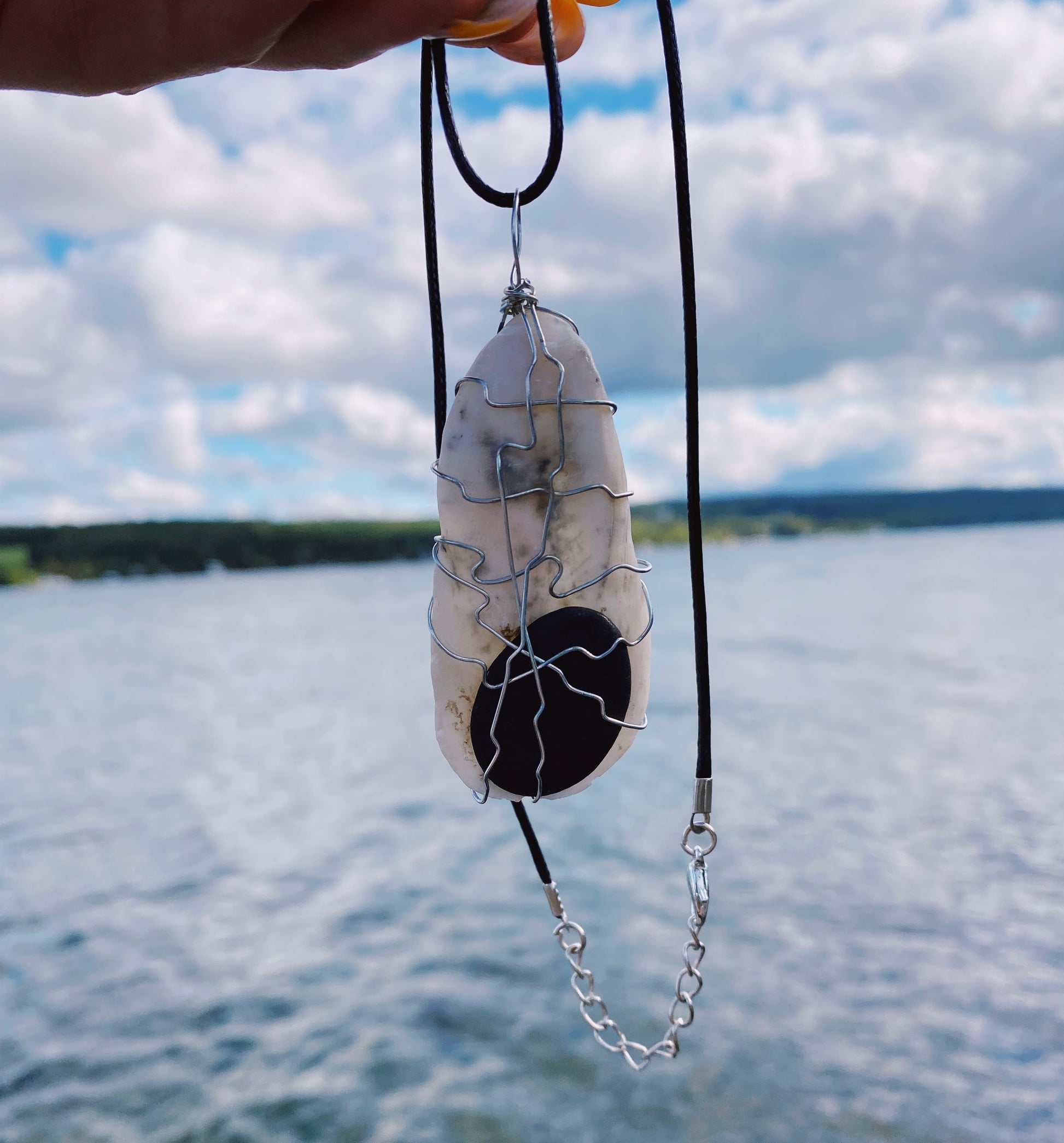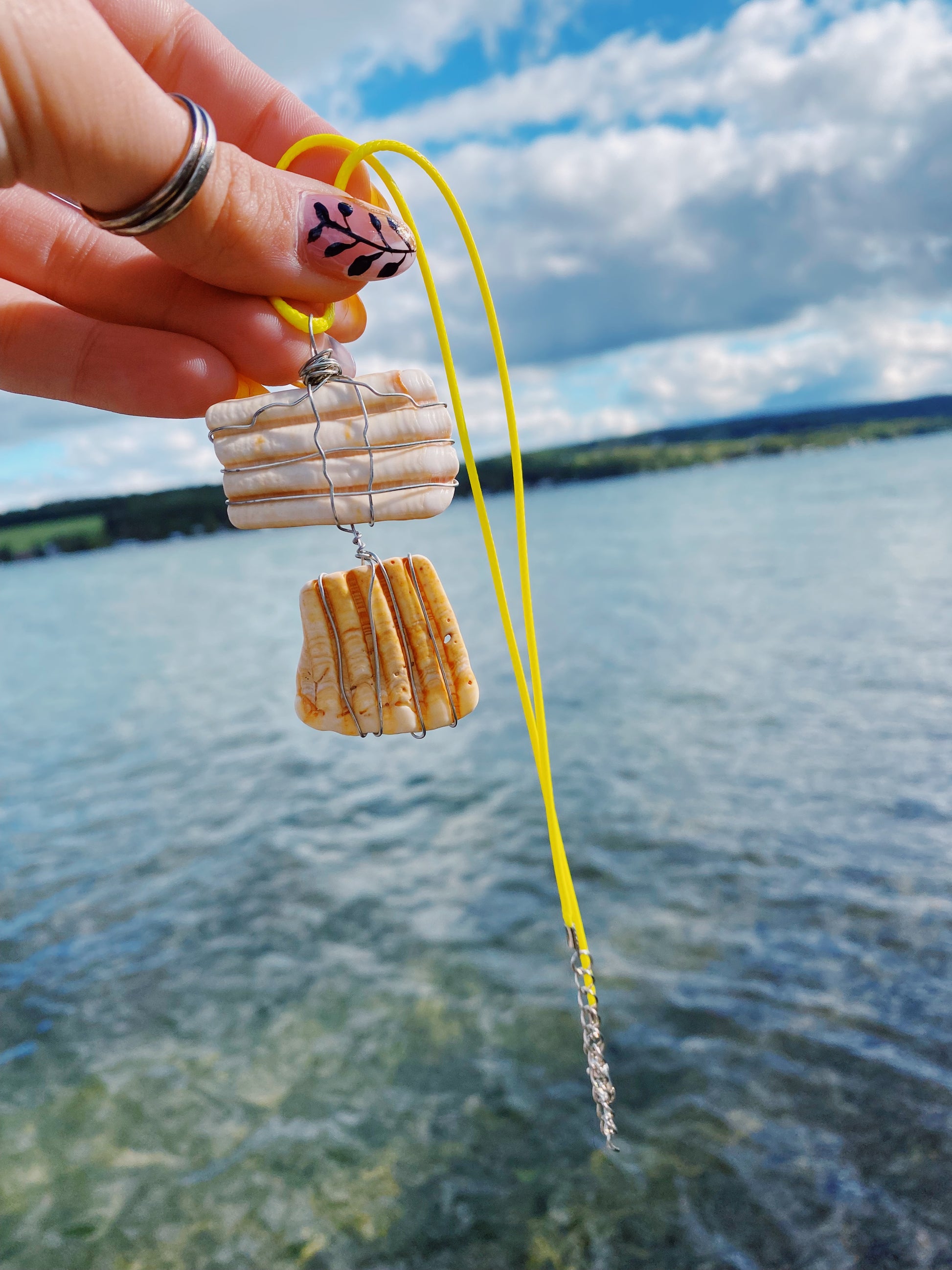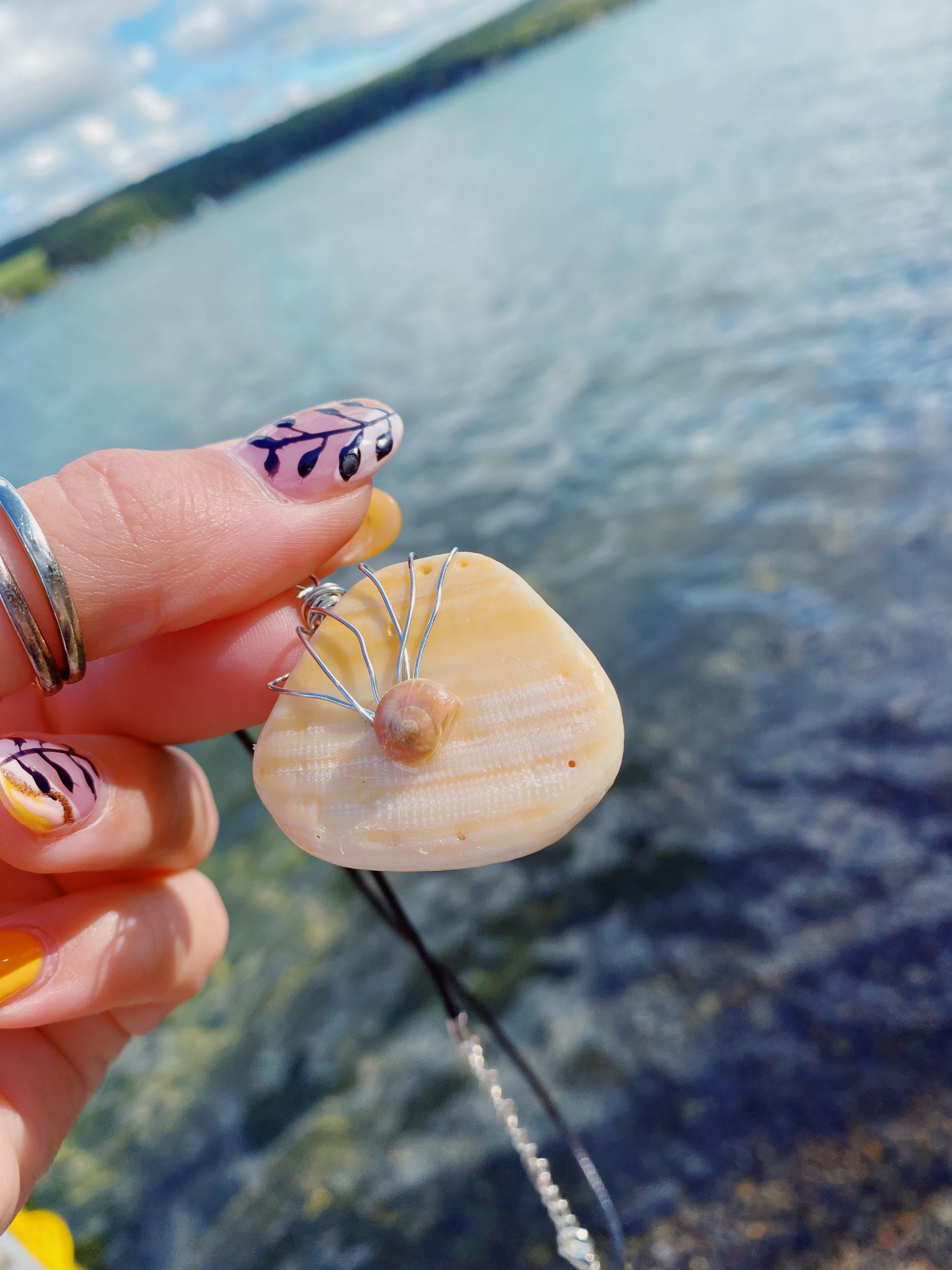 Handmade wire wrapped necklaces from Florida rocks, seaglass & shells