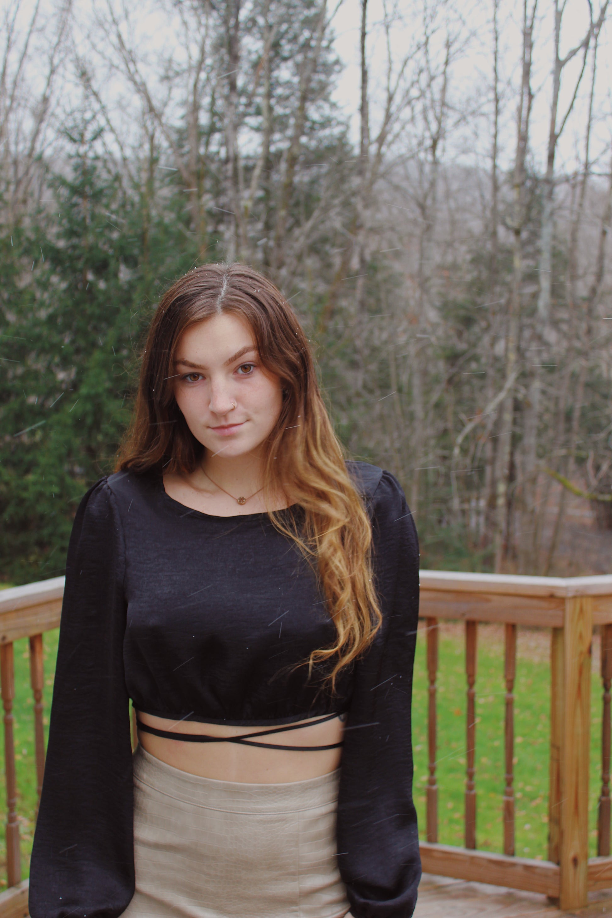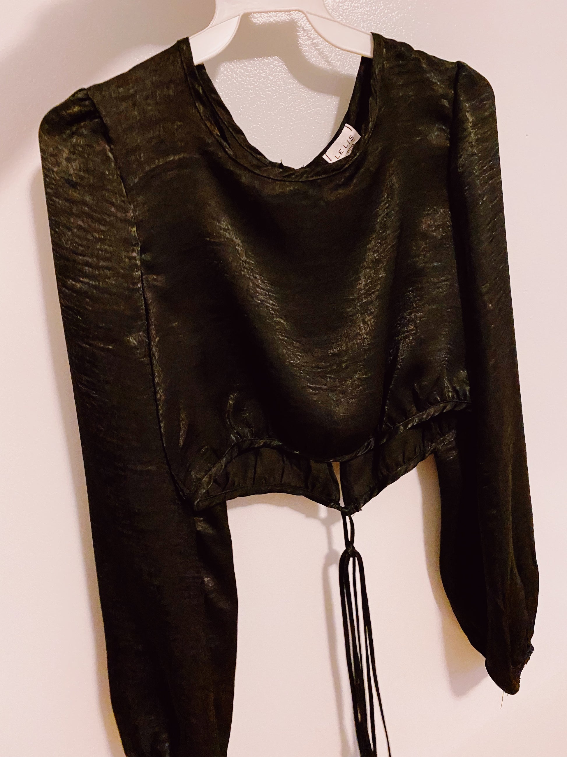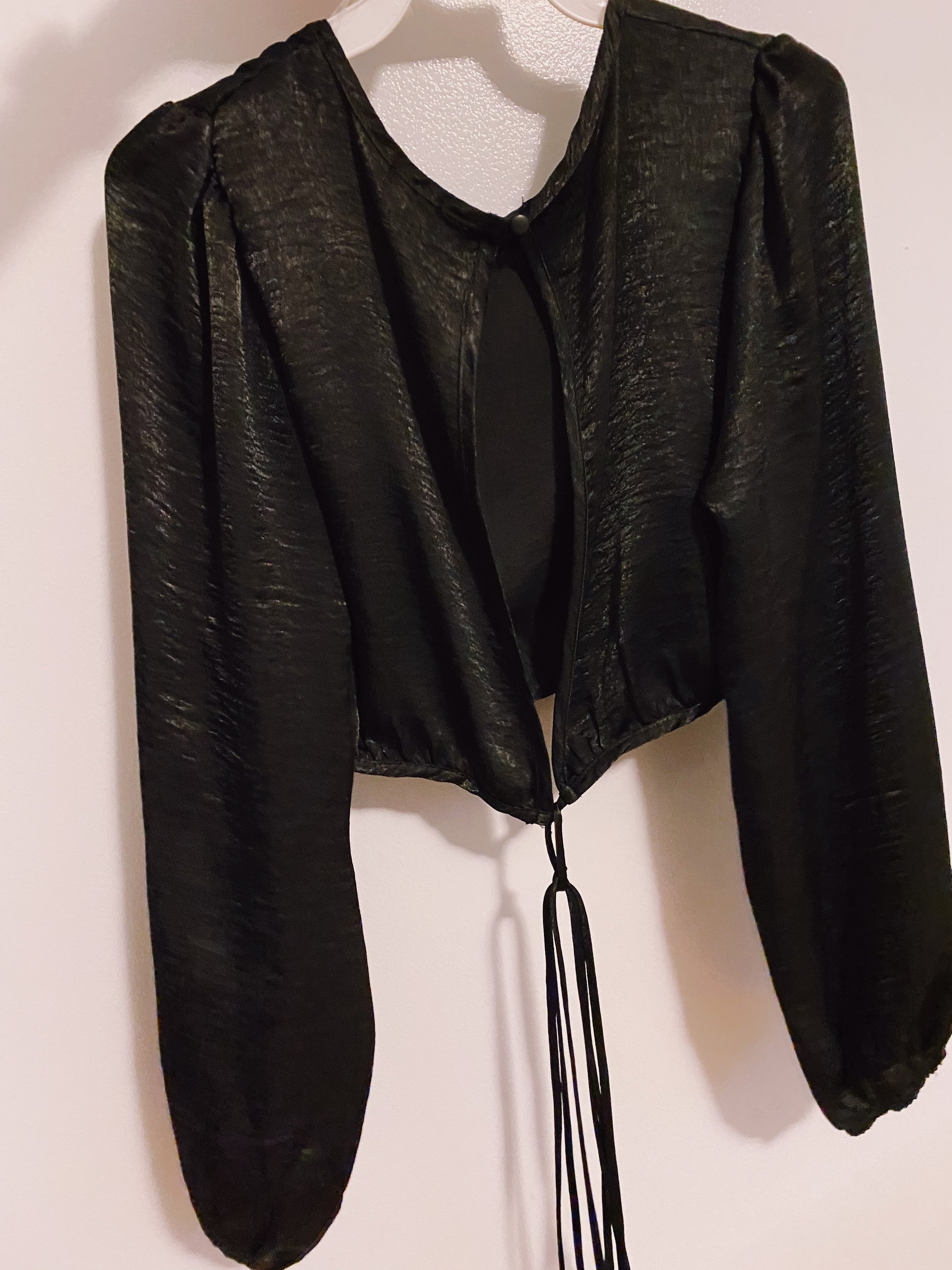 Long sleeve tie detail crop top.