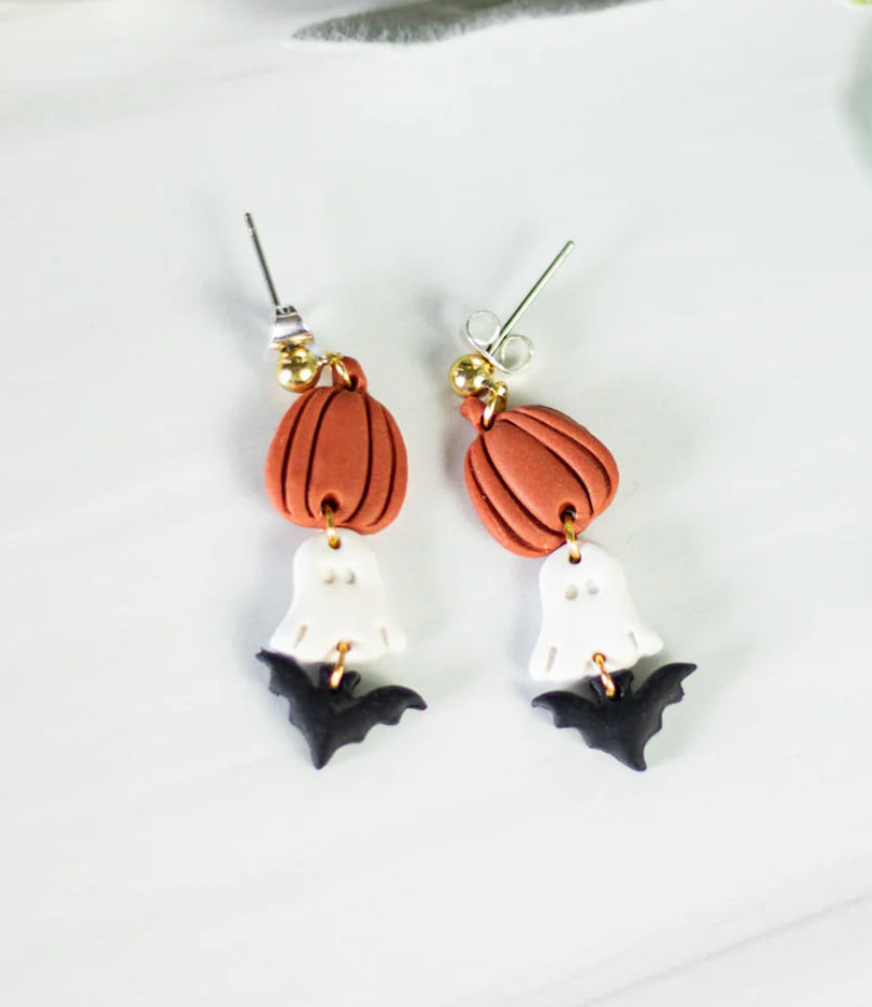 Pumpkin, Ghost, Bat Mini Trio Earrings