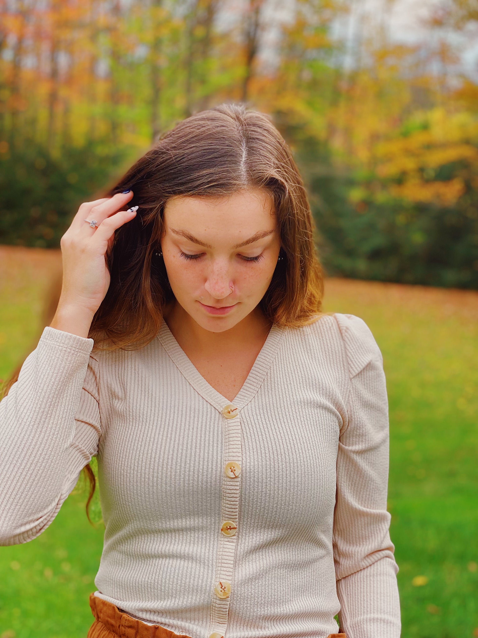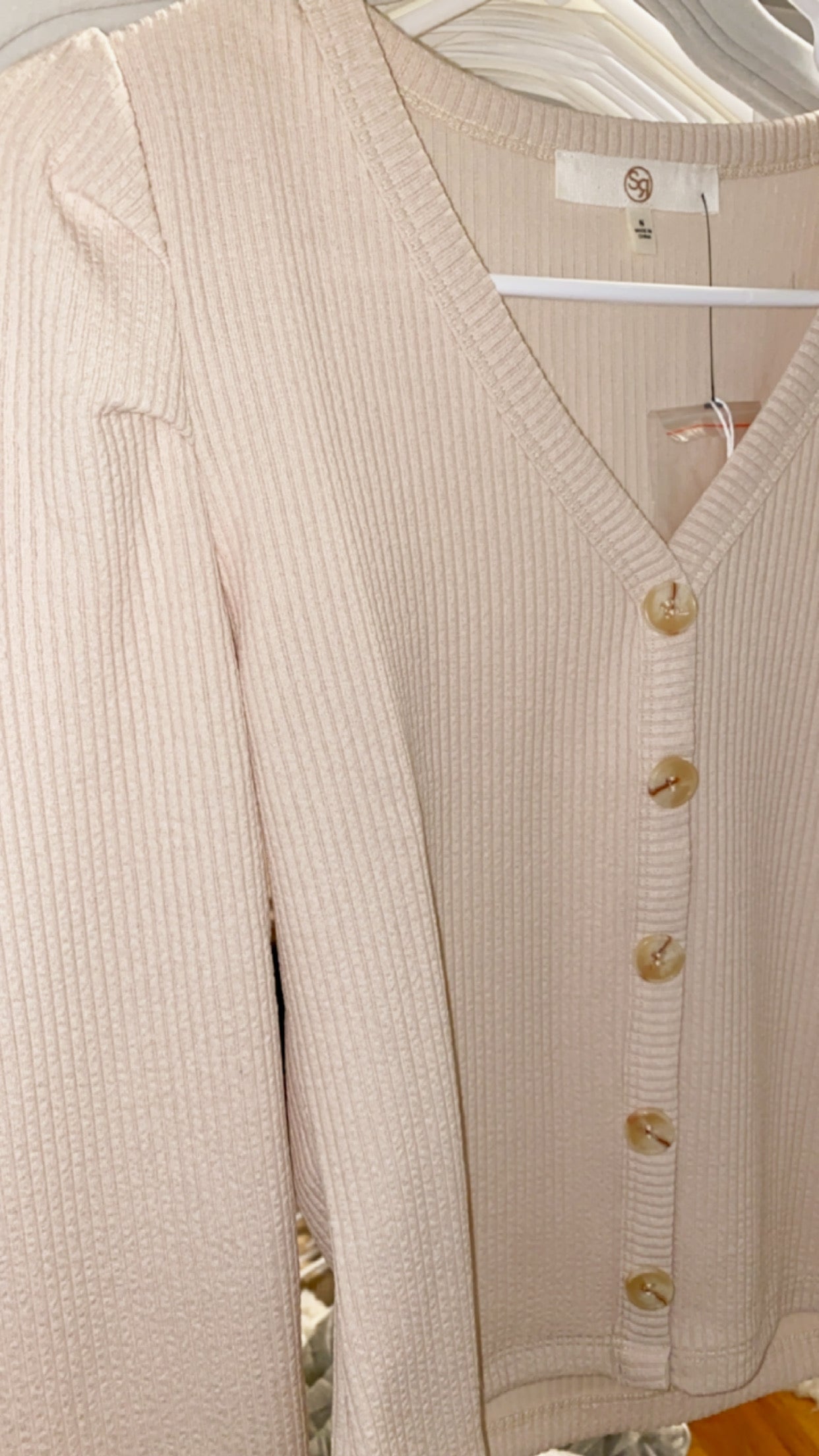 Ribbed button down with puff sleeve