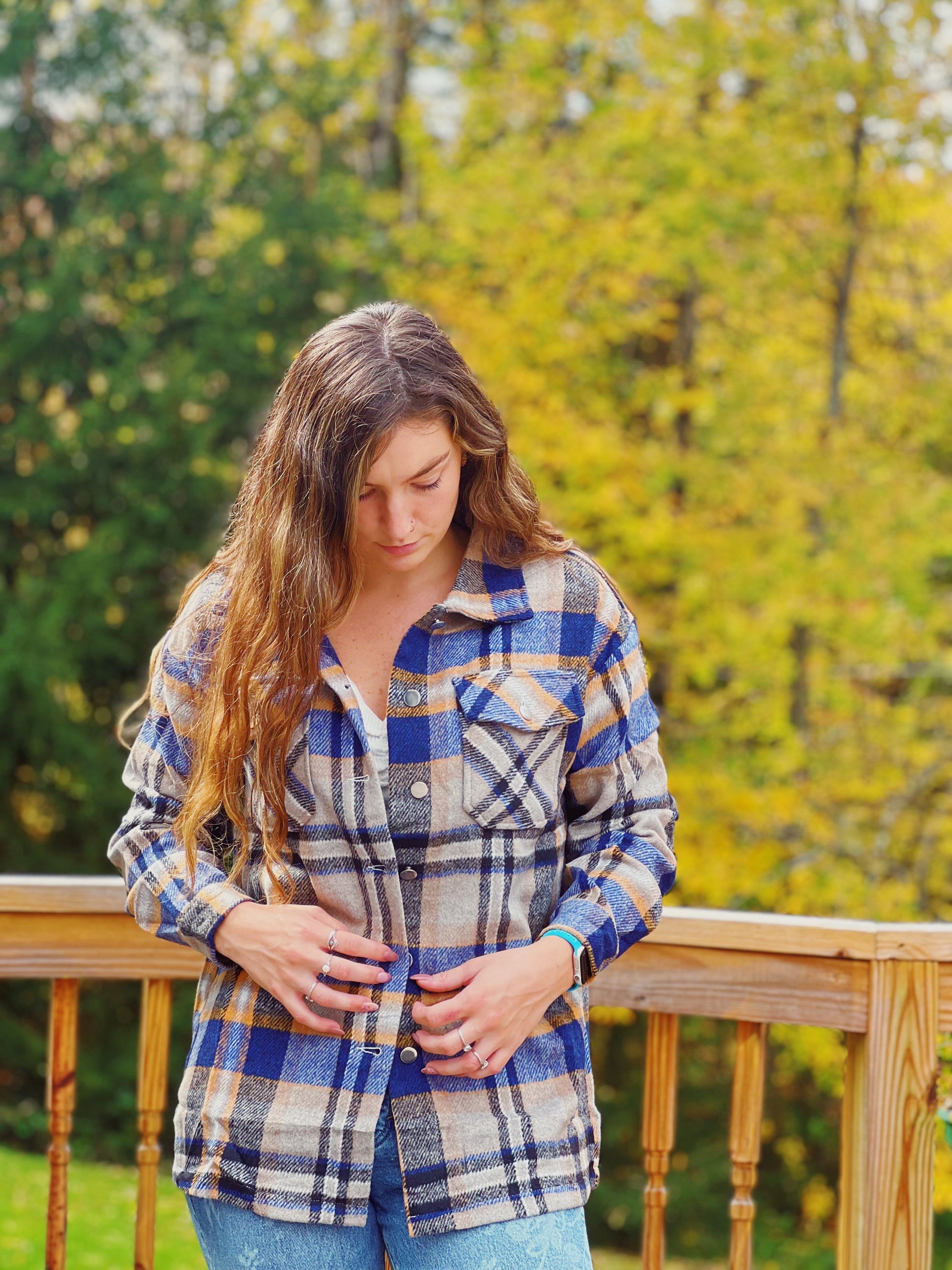 Roll With You Blue and Orange Flannel Shacket